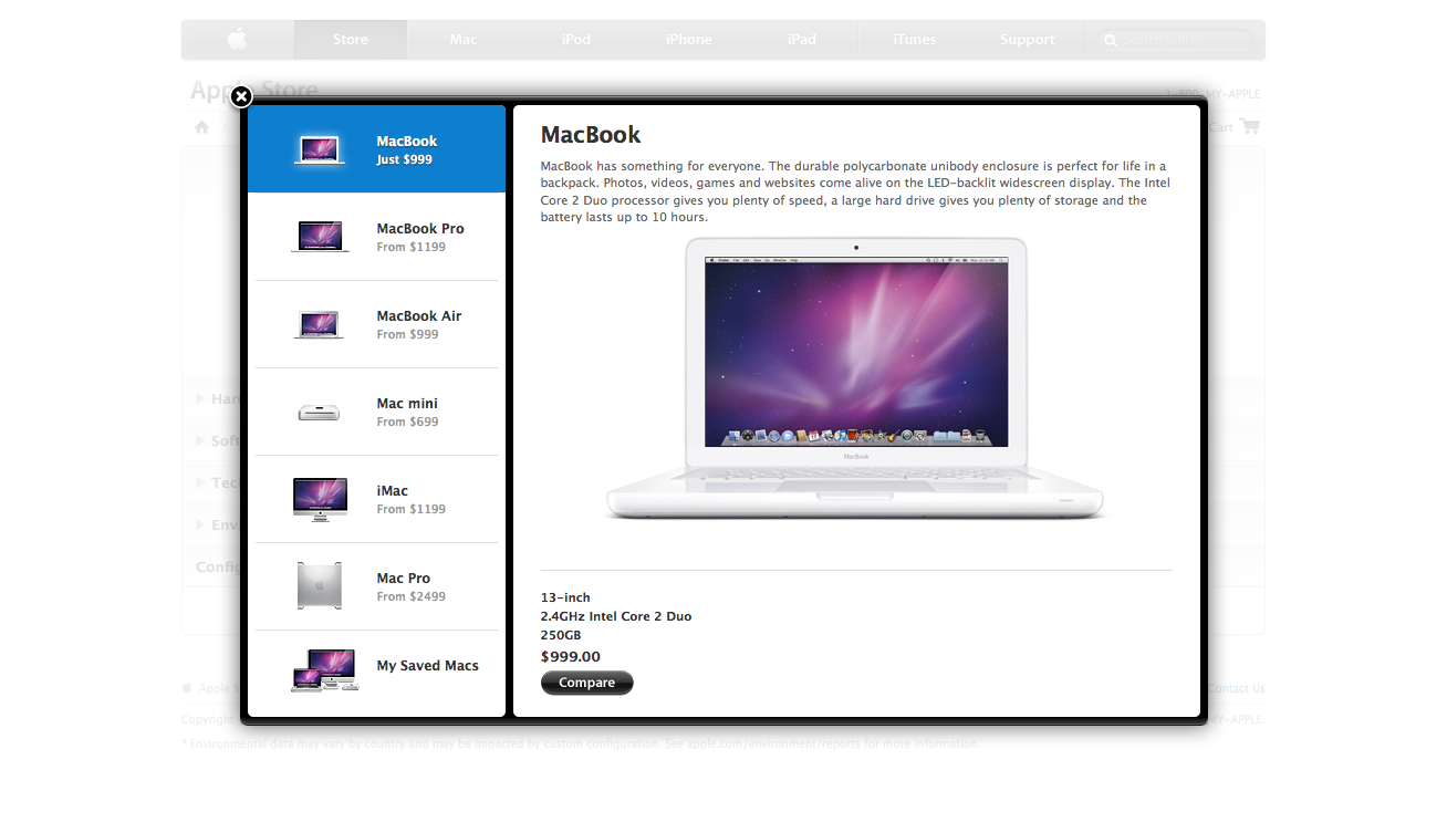 Designed and managed development of the Apple Online Store Compare tool.